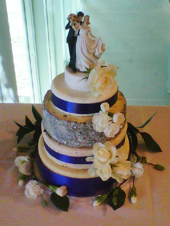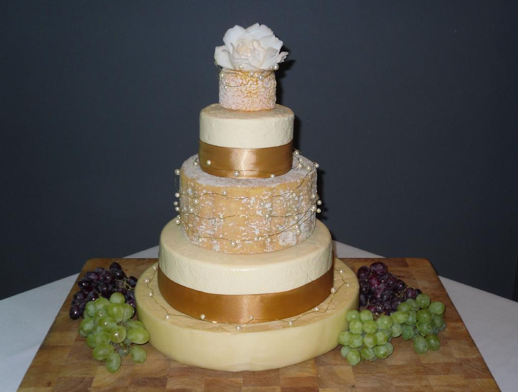 Here we have an example of a Cheese Wedding Cake. These can be tailored to your individual requirements from a large range of cheeses. In this example we have a Lancashire, a Cheshire, Perl Las Blue, Coverdale and a beautiful Langre on the top. We can also supply chutneys and crackers, deliver and dress the cheese locally or deliver using overnight couriers. Why not add one of our bespoke hampers as a gift for the mother/father of the Bride/Groom? Choose from our wide range of products (including Yorkshire beers, wines, chutneys, crackers etc) and basket styles. Please call or email for more details. Please note this is a guide price for this particular cake and is a price for collection only.